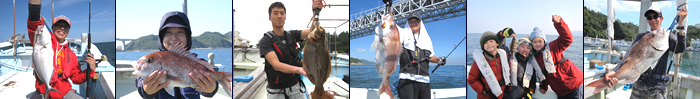 主にメバル、タイ、ハマチ、マルアジ、アオリイカなど。